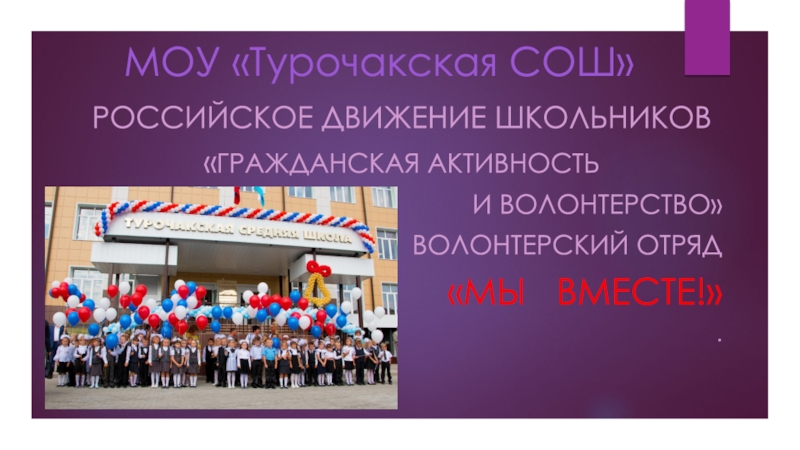 МОУ «Турочакская СОШ»Российское движение школьников«Гражданская активность и волонтерство»Волонтерский отряд«Мы  вместе!»   .