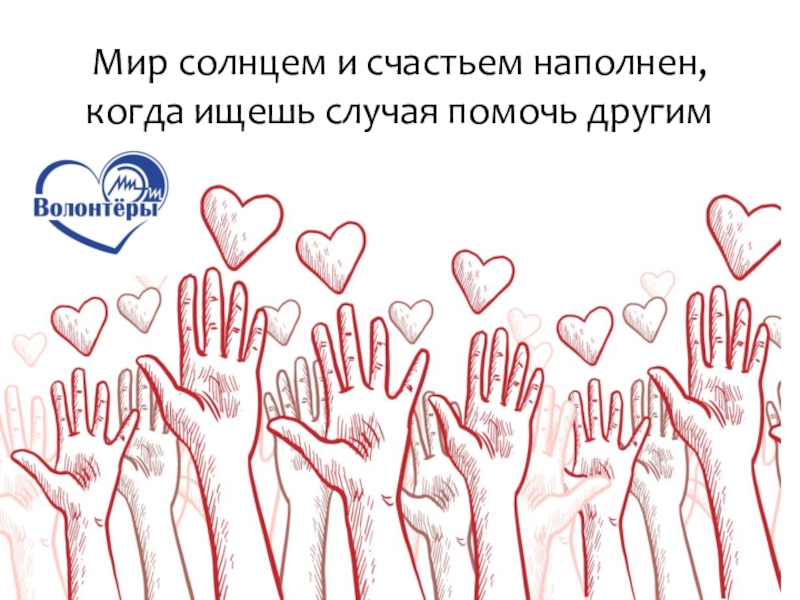 Слайд 15Мир солнцем и счастьем наполнен, когда ищешь случая помочь другим