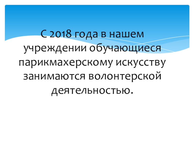 Слайд 2С 2018 года в нашем учреждении обучающиеся парикмахерскому искусству занимаются волонтерской