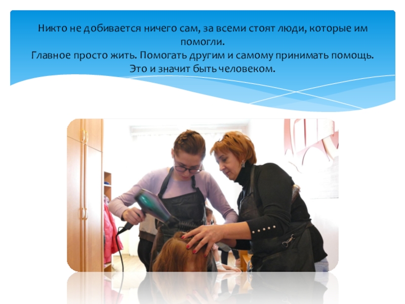 Слайд 13Никто не добивается ничего сам, за всеми стоят люди, которые им