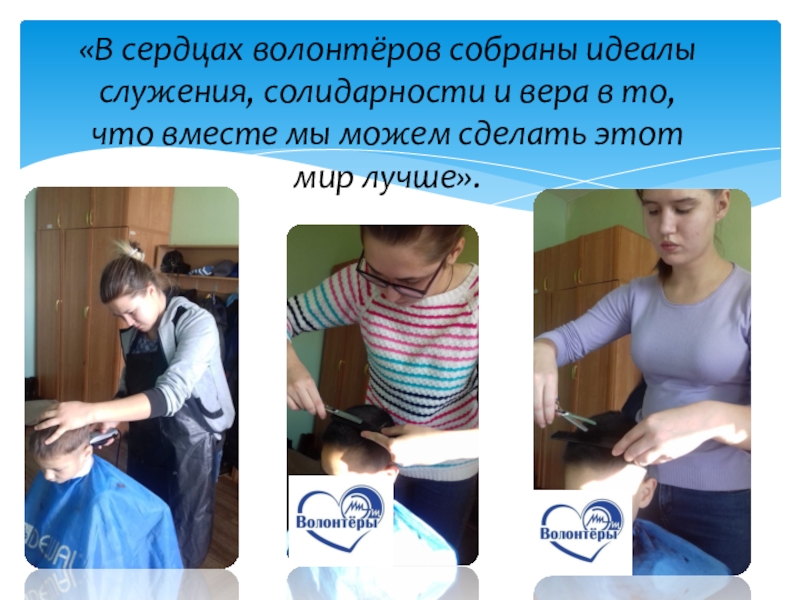 Слайд 6«В сердцах волонтёров собраны идеалы служения, солидарности и вера в то,