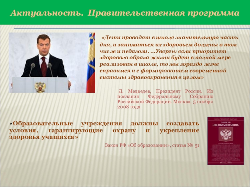 Д. Медведев, Президент России. Из послания Федеральному Собранию Российской Федерации. Москва. 5 ноября 2008 года