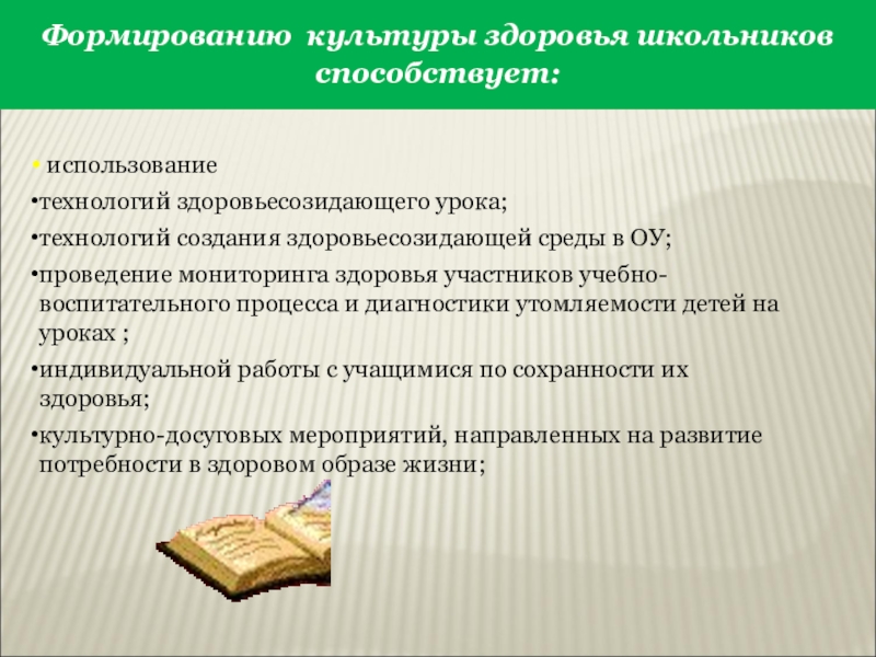 4. Использование разнообразных видов здоровьесберегающей деятельности учащихся, направленных на сохранение и повышение резервов здоровья, работоспособности