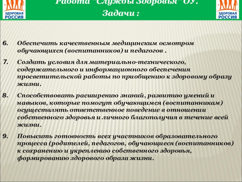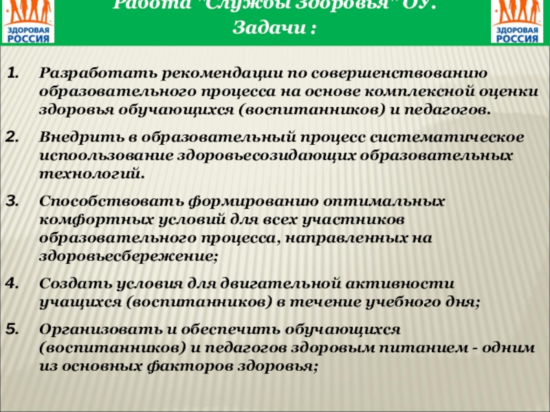 «Образовательные учреждения должны создавать условия, гарантирующие охрану и укрепление здоровья учащихся»