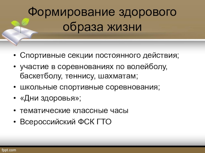 Слайд 18Формирование здорового образа жизни