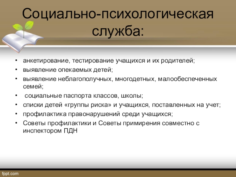 Слайд 6Социально-психологическая служба: