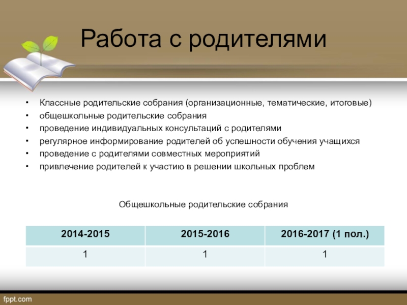 Слайд 10Работа с родителями