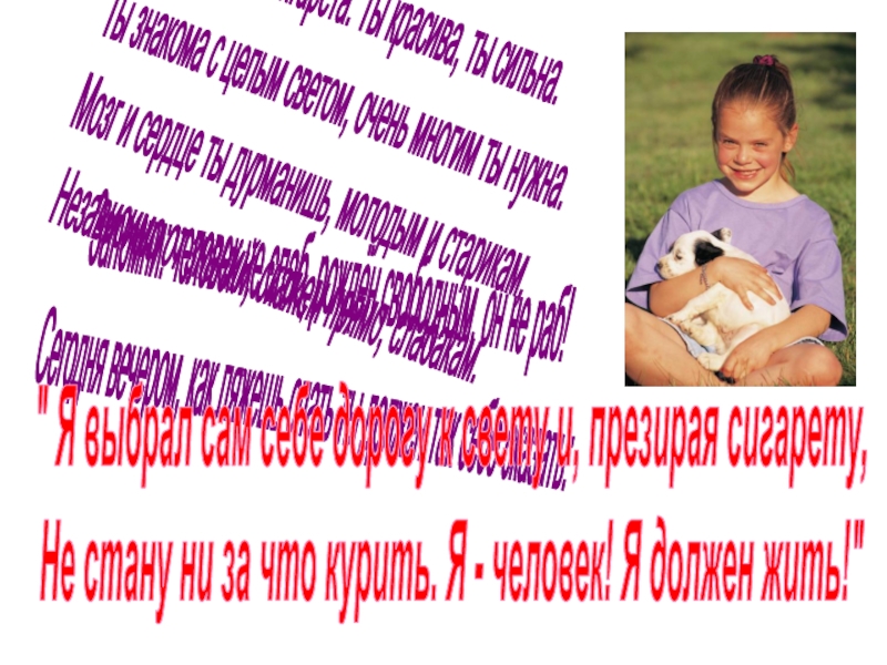 Не стану ни за что курить. Я - человек! Я должен жить!"
