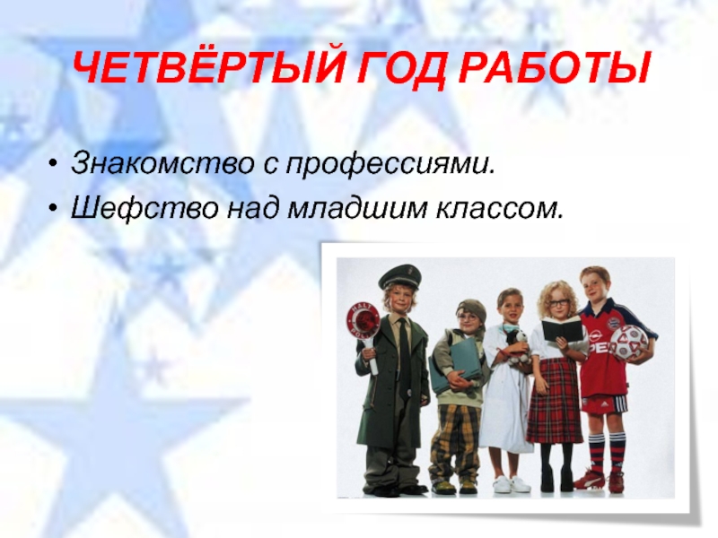ЧЕТВЁРТЫЙ ГОД РАБОТЫЗнакомство с профессиями.Шефство над младшим классом.