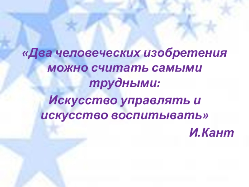 «Два человеческих изобретения можно считать самыми трудными:Искусство управлять и искусство воспитывать» И.Кант
