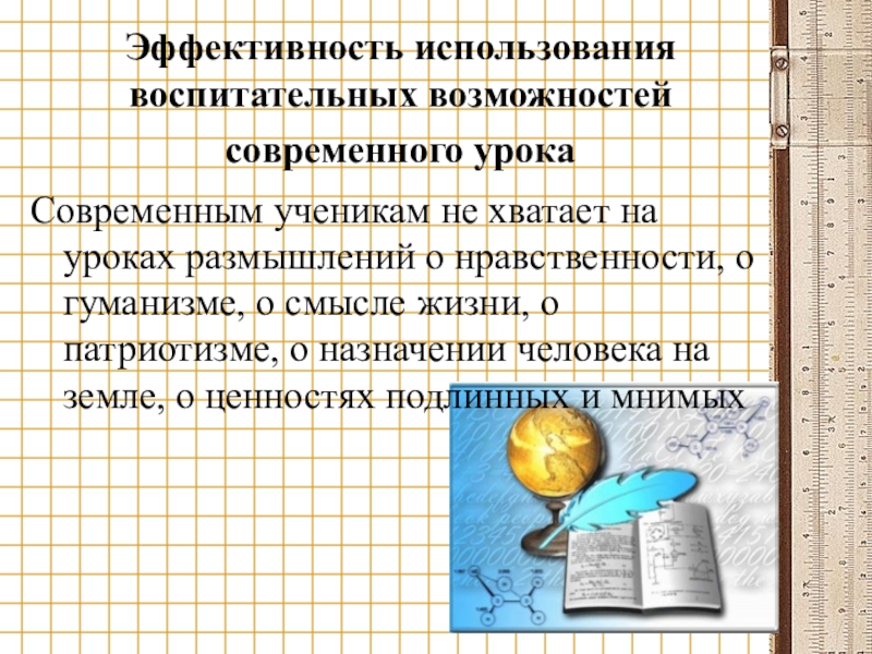 Слайд 5Эффективность использования воспитательных возможностей современного урока