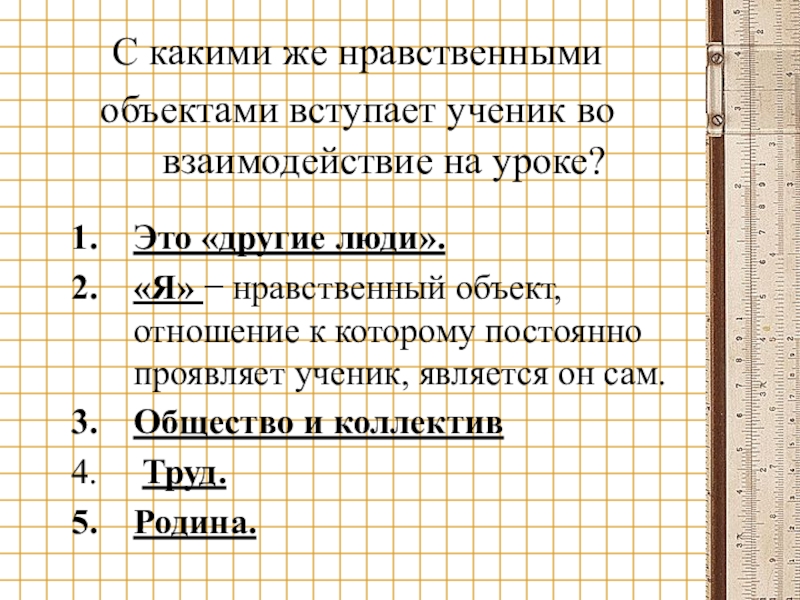 «Я» нравственный объект, отношение к которому постоянно проявляет ученик, является он сам.