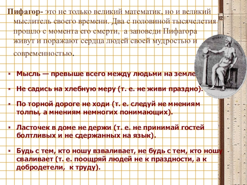 Слайд 27Пифагор- это не только великий математик, но и великий
