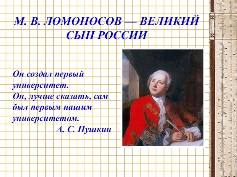 Слайд 26М. В. ЛОМОНОСОВ—ВЕЛИКИЙ СЫН РОССИИ