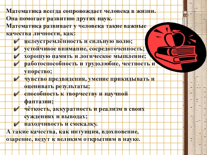 Слайд 10Математика всегда сопровождает человека в жизни.