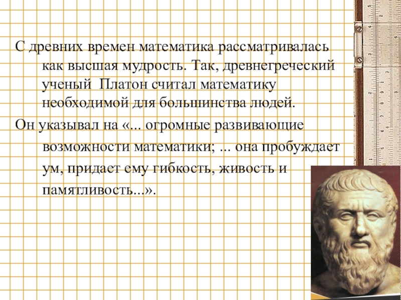 Слайд 8С древних времен математика рассматривалась как высшая мудрость. Так, древнегреческий ученый