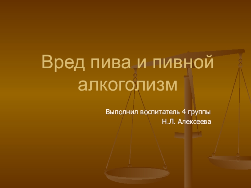 Слайд 1Вред пива и пивной алкоголизм