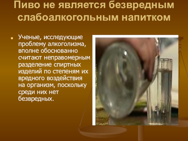 Слайд 2Пиво не является безвредным слабоалкогольным напитком