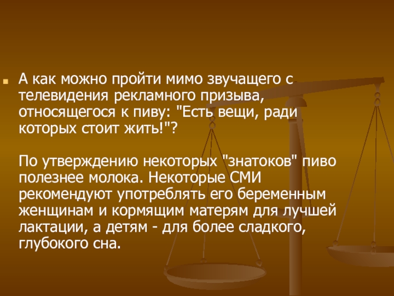 Слайд 24Реклама пива умалчивает о вреде
