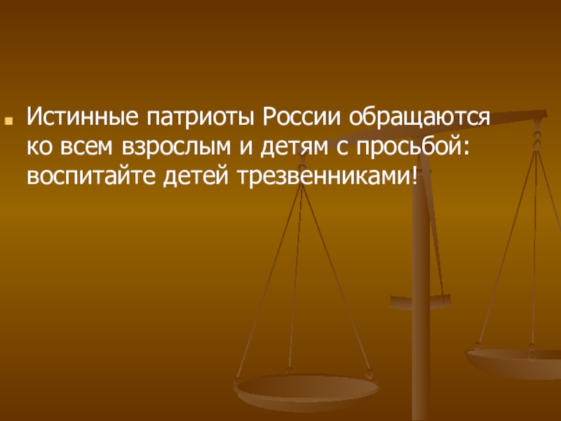 Слайд 30Истинные патриоты России обращаются ко всем взрослым и детям с просьбой: