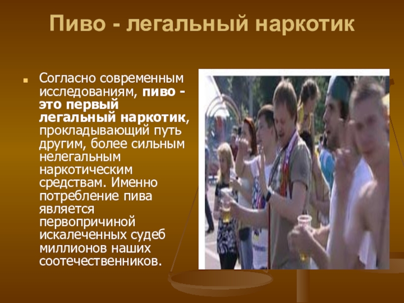 Слайд 18Пиво - легальный наркотик