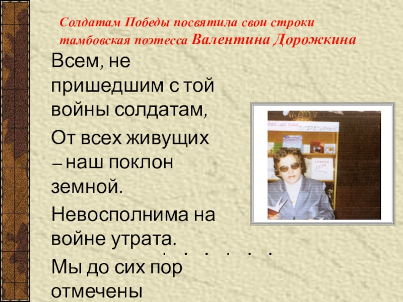 Солдатам Победы посвятила свои строки тамбовская поэтесса Валентина Дорожкина