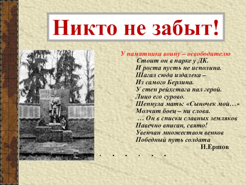 Николай Ершов – первомайский поэт. Он вспоминает о том, как одни ликовали в том далёком сорок пятом, а другие ждали, ждали отцов с войны