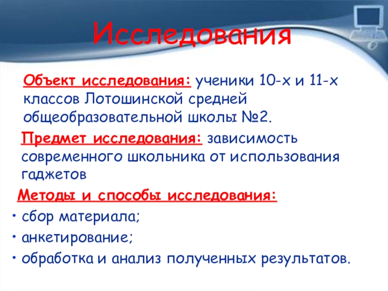Предмет исследования: зависимость современного школьника от использования гаджетов