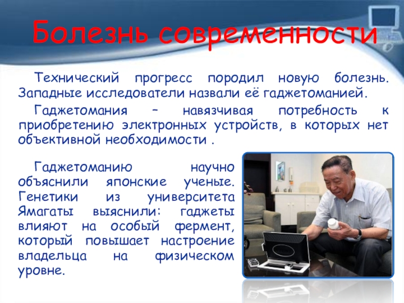 Гаджетоманию научно объяснили японские ученые. Генетики из университета Ямагаты выяснили: гаджеты влияют на особый фермент, который повышает настроение владельца на физическом уровне.