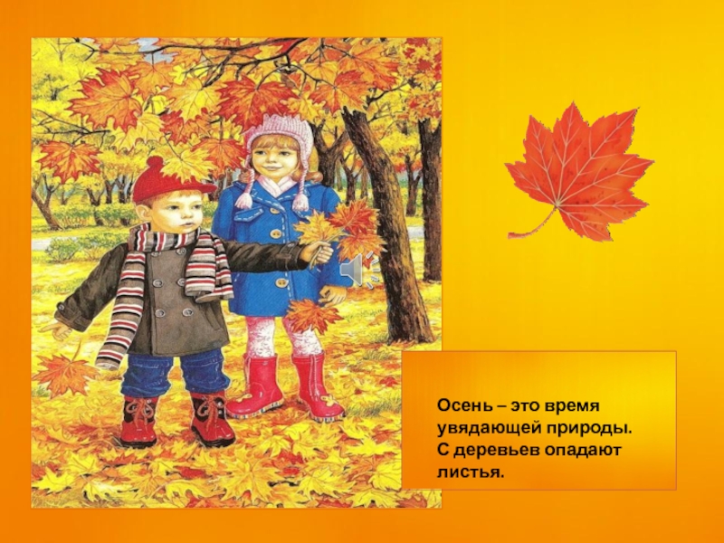 Слайд 23Осень – это время увядающей природы. С деревьев опадают листья.