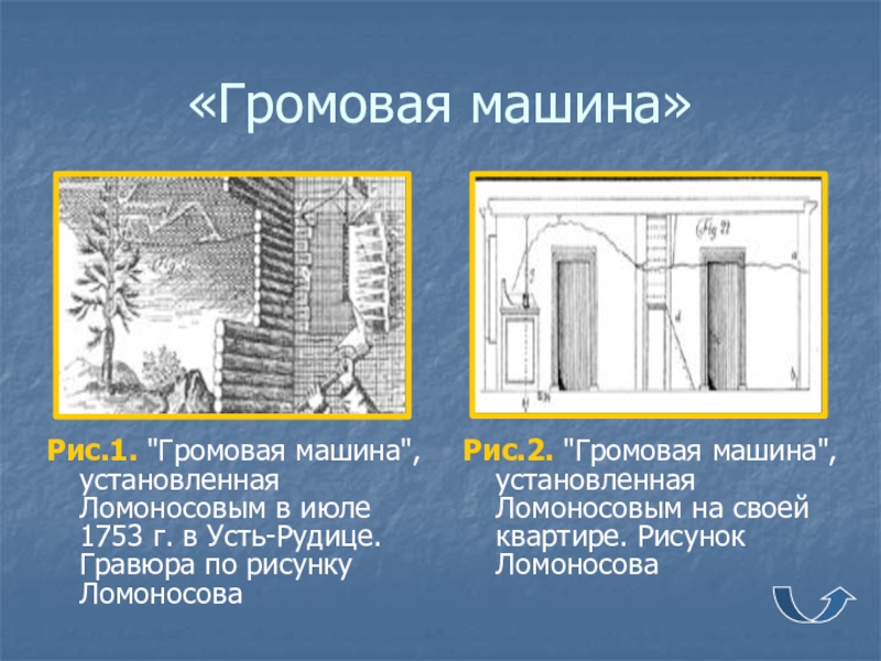 Рис.2. "Громовая машина", установленная Ломоносовым на своей квартире. Рисунок Ломоносова