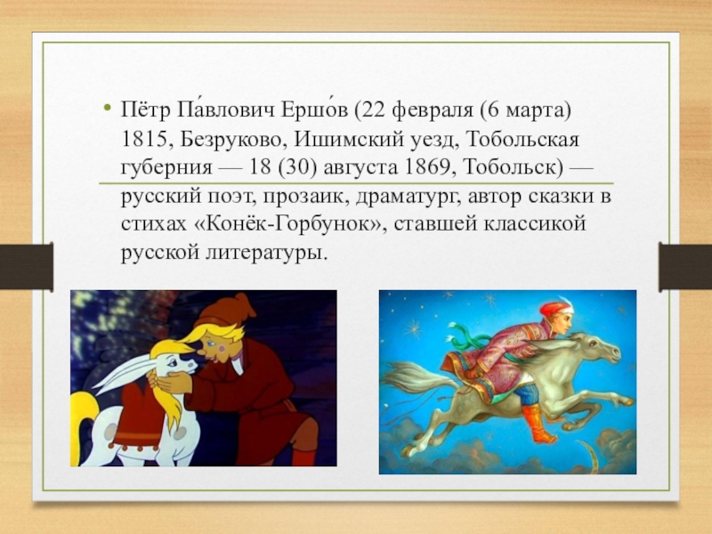 Слайд 11Пётр Па́влович Ершо́в (22 февраля (6 марта) 1815, Безруково, Ишимский уезд,
