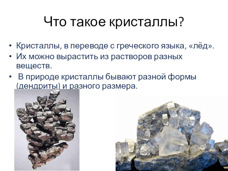 В природе кристаллы бывают разной формы (дендриты) и разного размера.