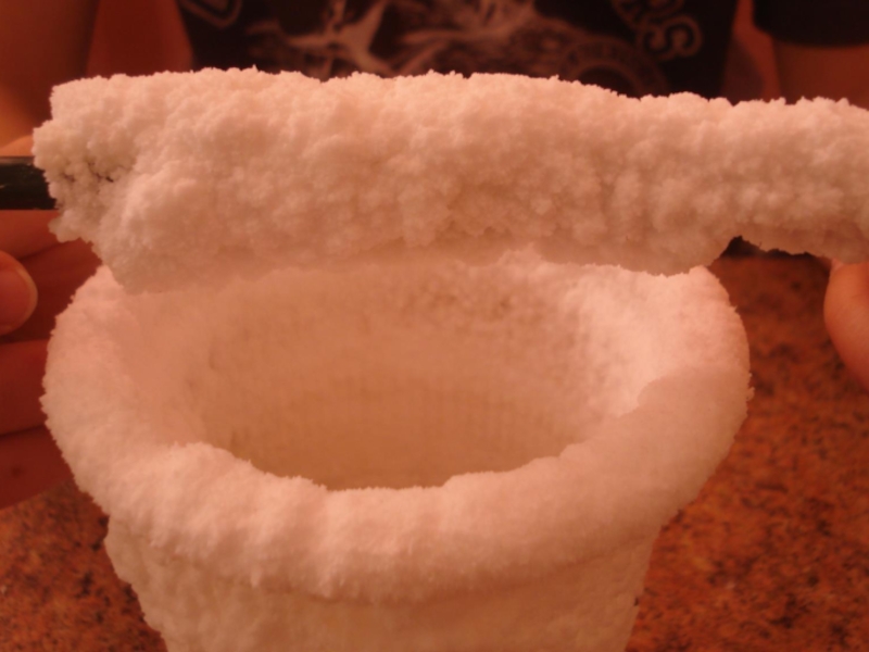 Взять нитку с гаечкой, повесить на карандаше так, чтобы она погрузилась в раствор, но и не достала дна.