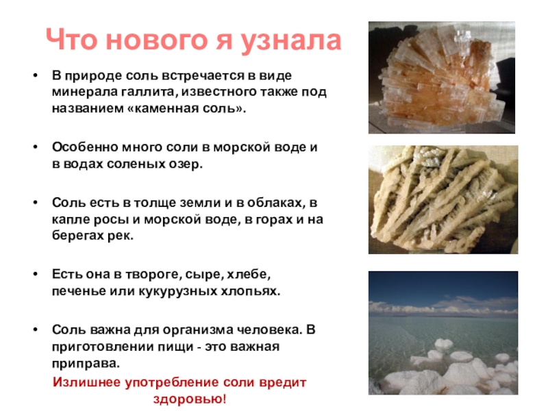 Соль есть в толще земли и в облаках, в капле росы и морской воде, в горах и на берегах рек.