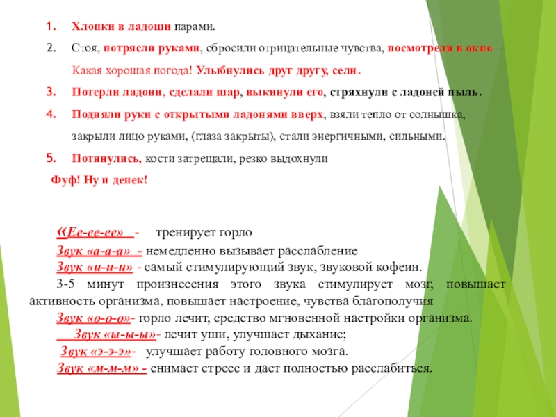 Звук «м-м-м» - снимает стресс и дает полностью расслабиться.
