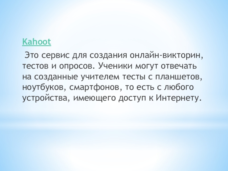 Это сервис для создания онлайн-викторин, тестов и опросов. Ученики могут отвечать