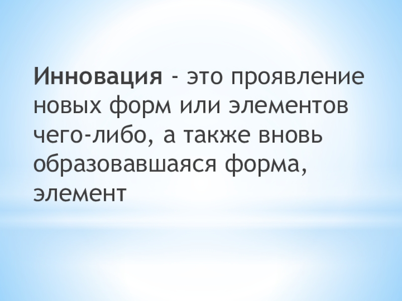 Слайд 2Инновация - это проявление новых форм или элементов чего-либо, а также