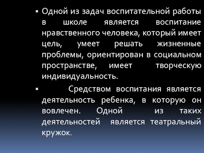 Средством воспитания является деятельность ребенка, в которую он вовлечен. Одной из таких деятельностей является театральный кружок.