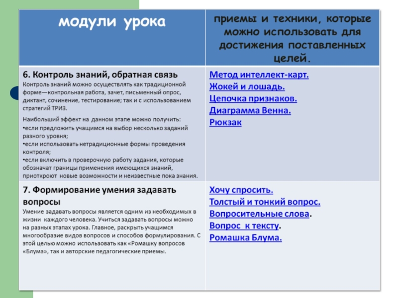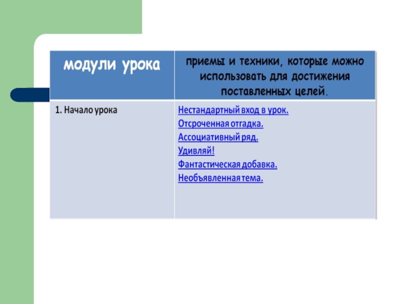 Слайд 2 1. Представить урок в виде логически законченных модулей с четко определенной