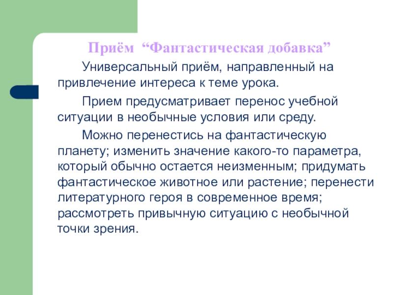 Слайд 5Приём “Фантастическая добавка”
