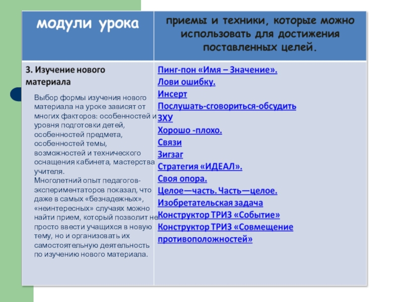 2. Исходя из тематики урока, цели модуля, с учетом возрастных психологических особенностей развития детей, выбрать педагогический прием или технику из банка приемов.