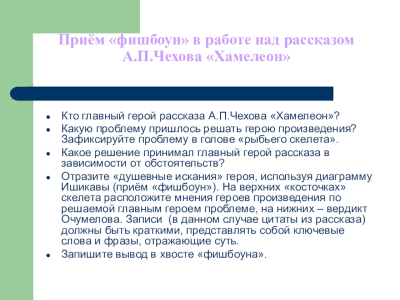 Слайд 28Приём «фишбоун» в работе над рассказом