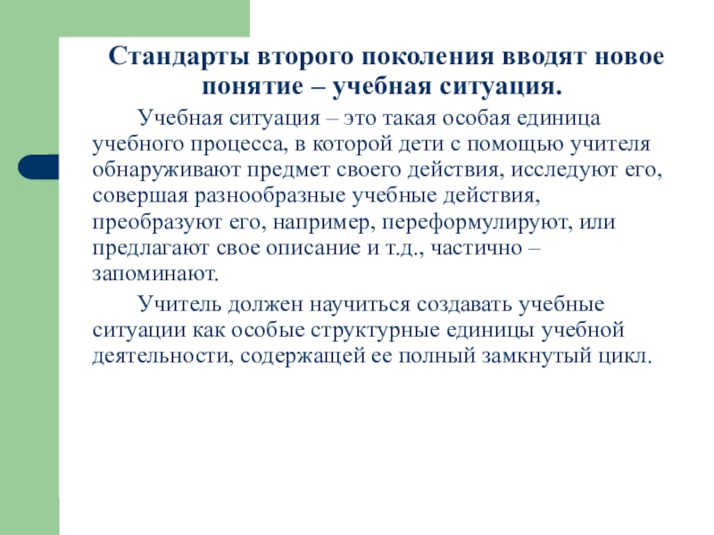 Слайд 3 Стандарты второго поколения вводят новое понятие – учебная ситуация.