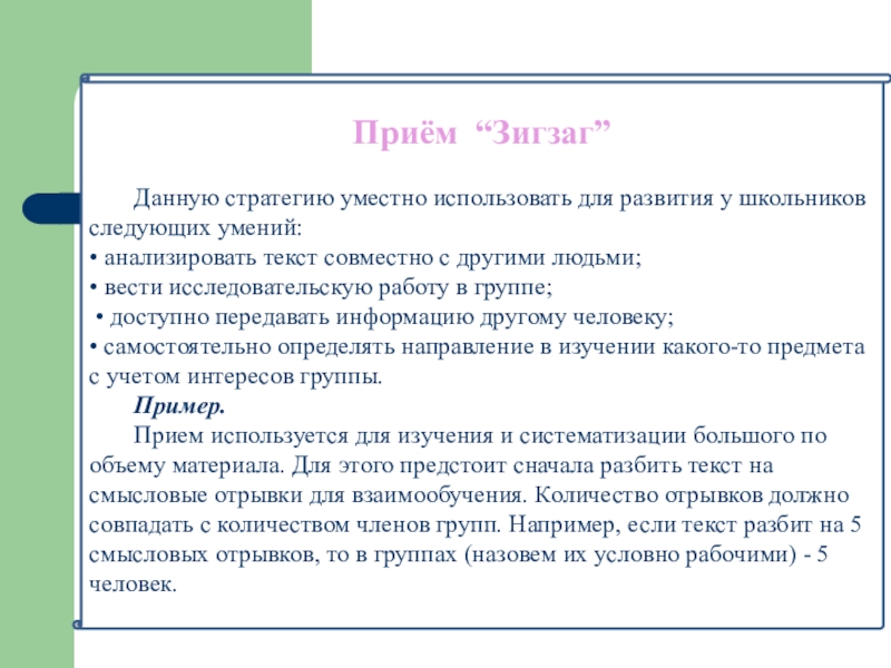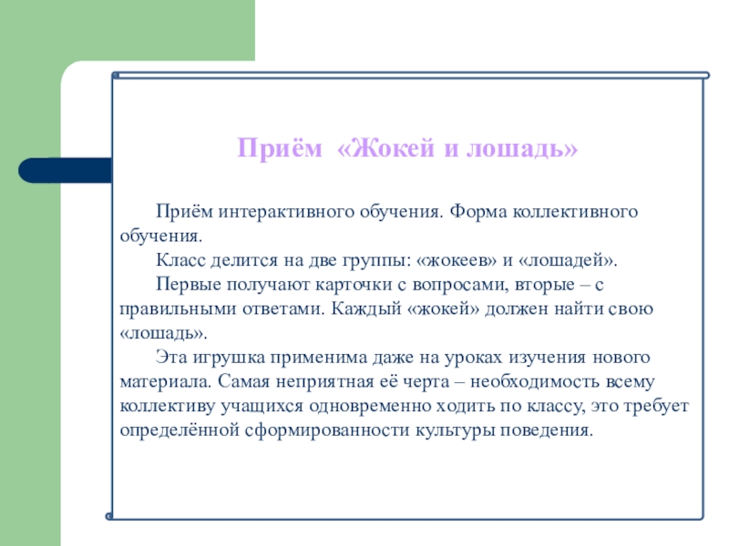 Приём интерактивного обучения. Форма коллективного обучения.