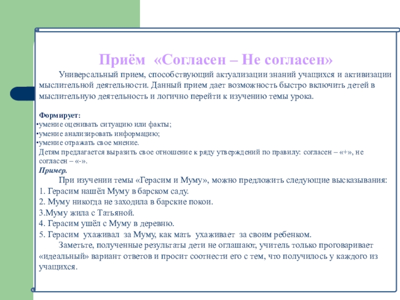 Слайд 17Приём «Согласен – Не согласен»