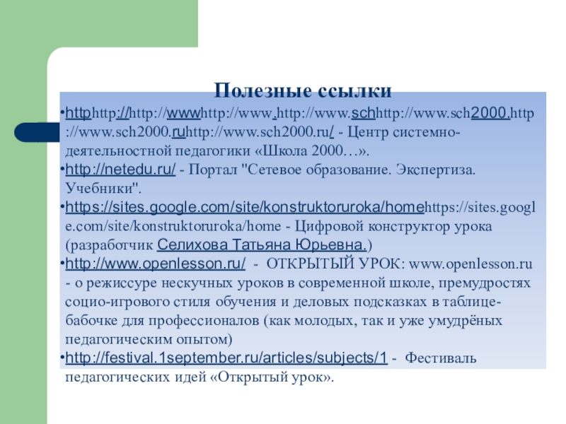 httphttp://http://wwwhttp://www.http://www.schhttp://www.sch2000.http://www.sch2000.ruhttp://www.sch2000.ru/ - Центр системно-деятельностной педагогики «Школа 2000…».