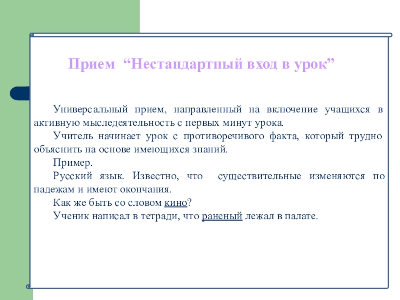 Прием “Нестандартный вход в урок”
