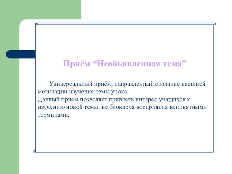 Слайд 11Приём “Необъявленная тема”