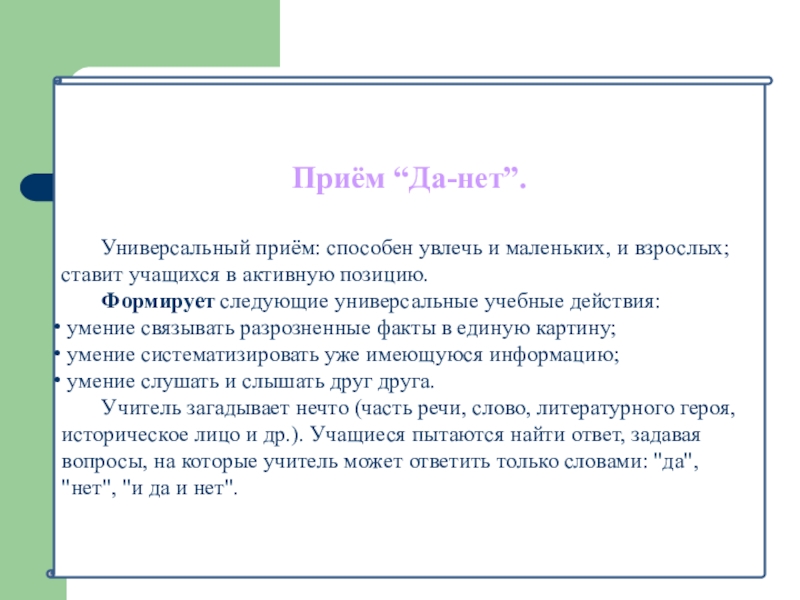 Слайд 14Приём “Да-нет”.